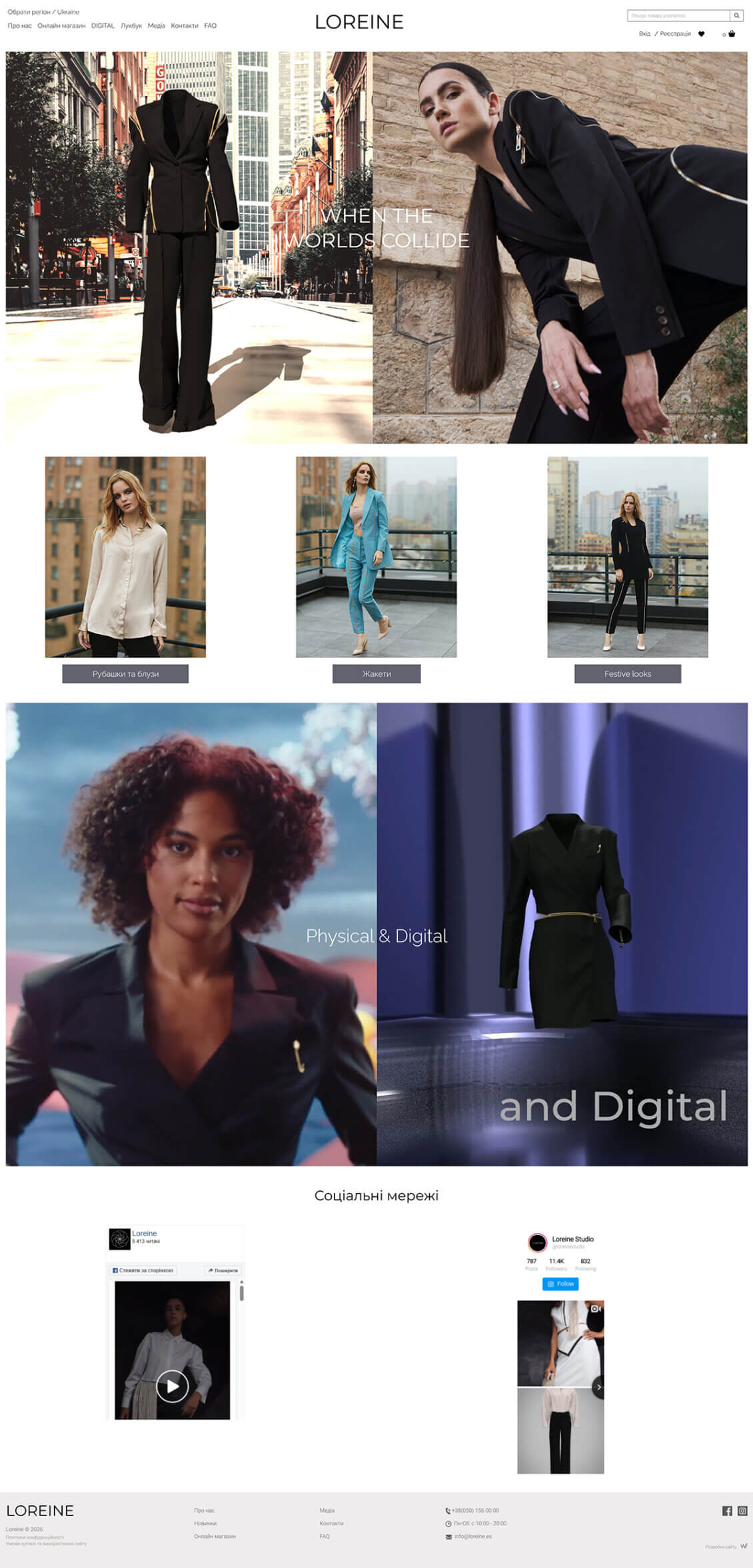 Веб-студия Webstudio Friendly разработала интернет-магазин для испанско-украинского бренда женской деловой одежды LOREINE. Каталог интернет-магазина структурирован по категориям: рубашки и блузы, жакеты, платья, костюмы и линия Festive looks. Коллекции отражают динамичный ритм жизни современной женщины, сочетая деловые, повседневные и вечерние образы.